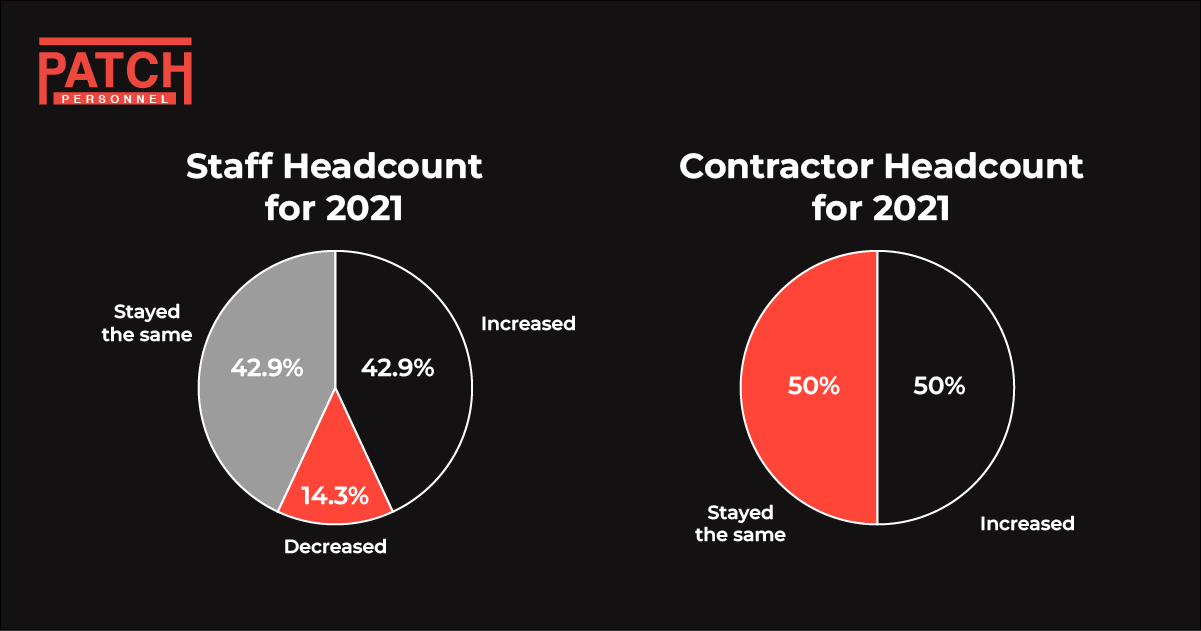 Changes in headcount over the past year indicate stability and growth for the sector, with 85% of employers stating their permanent headcount increased or stayed the same as the previous year. Similarly, contractor headcount showed no decrease in 2021/22.